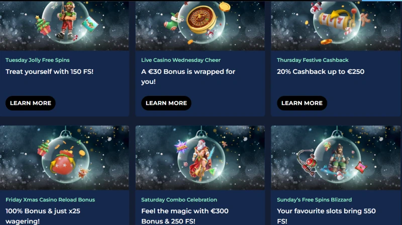 Fredags-julcasino Reload Bonus â 100% reload med lĂ€ttare x25 omsĂ€ttning för din helgtoppning.