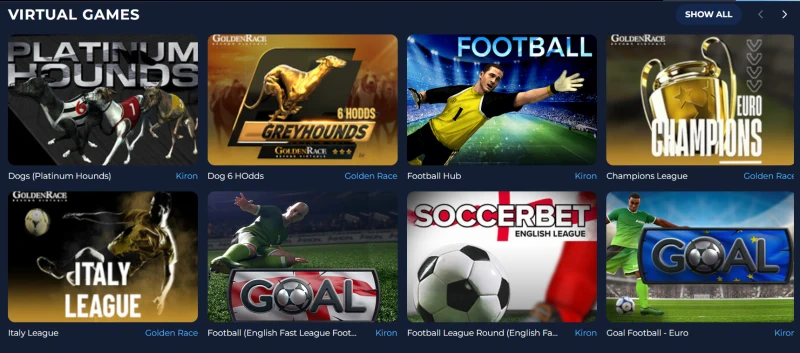 Utöver sitt traditionella casinoutbud erbjuder Moana Casino en omfattande svit av virtuella sporter och âinstantâ-bettingalternativ för spelare som vill ha snabba resultat dygnet runt. I sektionerna Virtuelle Spiele och Virtual Soccer hittar du bland annat: